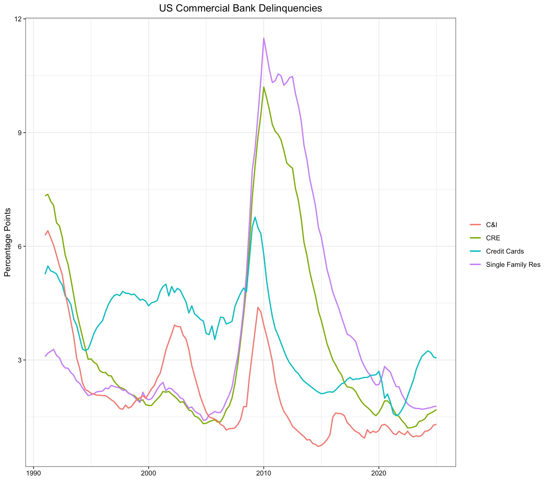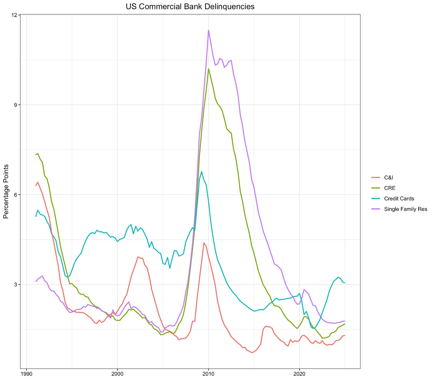 Credit cards ended up mellowing out, while it appears real estate and C&I may have troughed.